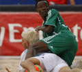 Первый матч Кубка стартовал весьма необычно. Утром в Рио прошел дождь, песок стал плотнее, и преимущество более опытных на песке аргентинцев нивелировалось. Уже через три минуты после начала матча последовал первый гол Кубка Мира 2006 года: 21-летний форвард нигерийской сборной Габриэль Агу прорвал оборону аргентинского вратаря Марсело Сальгуэйро. «Я счастлив, что мне удалось войти в историю, но нашей комаде, конечно, нужно еще многому научиться», - откомментировал Агу после финального свистка. Второй и третий голы матча последовали со стороны сборной Аргентины: первым пробил средний брат Лопес Хилаире Сантьяго, за ним последовал удар от младшего, Федерико. В первом тайме ни одной из команд так и не удалось захватить преимущество и вырваться вперед – 2:2, равновесие установилось после успешного штурма ворот противника самым молодым игроком команды Нигерии 16-летним Ифеанием Онигбо. Второй период стал более удачным для подопечных Ккелечи Еметеоле. Первый гол последовал от полузащитника Сулемана Юсмана, вторым вновь пробил Онигбо. Аргентинцам удалось забить только один гол: он последовал от 24-летнего Факундо Миничи. 4:3 – итог второго периода. Казалось, победа уже в руках у нигерийцев, но у аргентийцев хватило воли переломить ход игры. Благодаря фирменному удару Миничи и успешной атаке ворот лучшим бомбардиром сборной Сантьяго Лопесом Хилари в третьем тайме им удалось одержать волевую победу над сборной Нигерии. 5:4 – итоговый счет первого матча Кубка мира 2006.