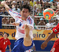 Блестящий результат второго матча Кубка Мира с участием французской сборной не оставляет сомнений в том, что на сегодняшний день «трехцветные» - одна из лучших команд в мире. После выигрыша с приличным отрывом в счете (7:4) у чемпионов Евролиги 2006, сборной Испании, подопечные Эрика Кантона закрепили свой успех разгромом канадцев и обеспечили себе место в 1/4 финала. На первых минутах матча ворота французов подверглись штурму со стороны североамериканцев, но голкипер Жан-Мари Аубри мужественно справился со всеми атаками. Уже на 6-й минуте матча ударом со средней дистанции Лоран Кастро открыл счет. Во втором тайме подопечные Эрика Кантона забили еще три мяча в ворота канадцев. Третий период матча прошел в еще более бешеном ритме. На второй минуте матча канадскому полузащитнику Крису Лемайру удалось записать первый и единственный в матче гол на счет своей команды. Дальше забивали только трехцветные и только с дальней дистанции. Больше всего мячей в этот день удалось забить Баскуазье: на его счету хет-трик. Последним в списке бомбардиров французской сборной стал Ноэль Скиортино: он забил 9-й по счету гол матча на предпоследней минуте. Проиграв матч, канадская сборная лишила себя шансов на выход в плэй-офф,